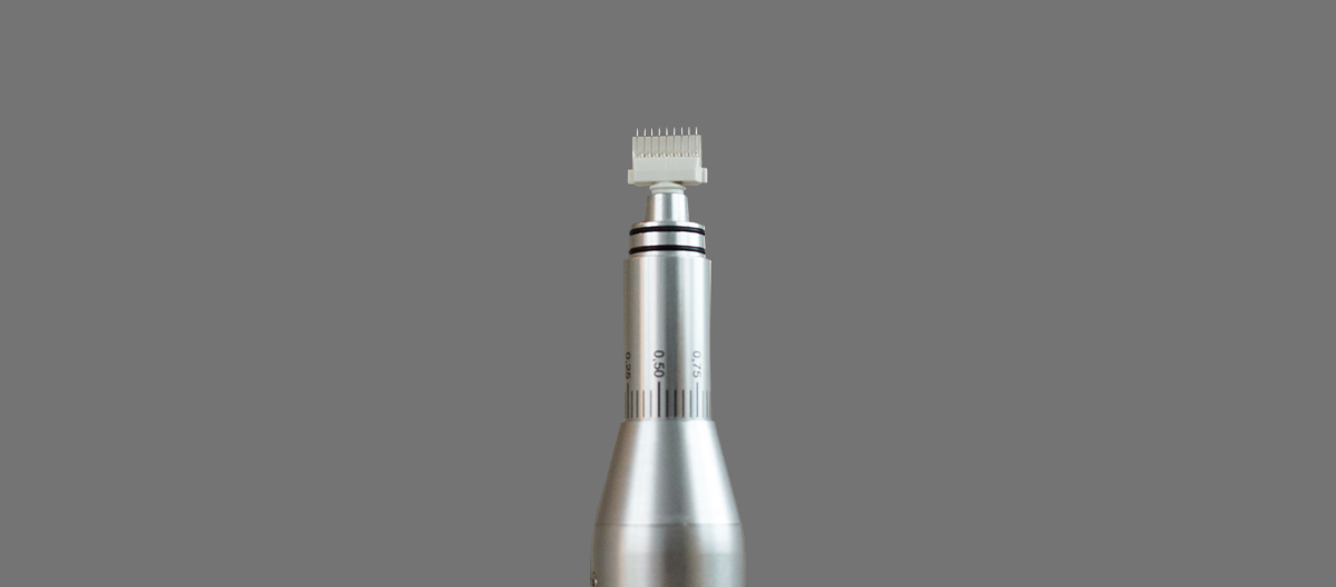 Ultrafeine, in einer Reihe angeordnete Mikronadeln garantieren exakte Ergebnisse bei der Behandlung.